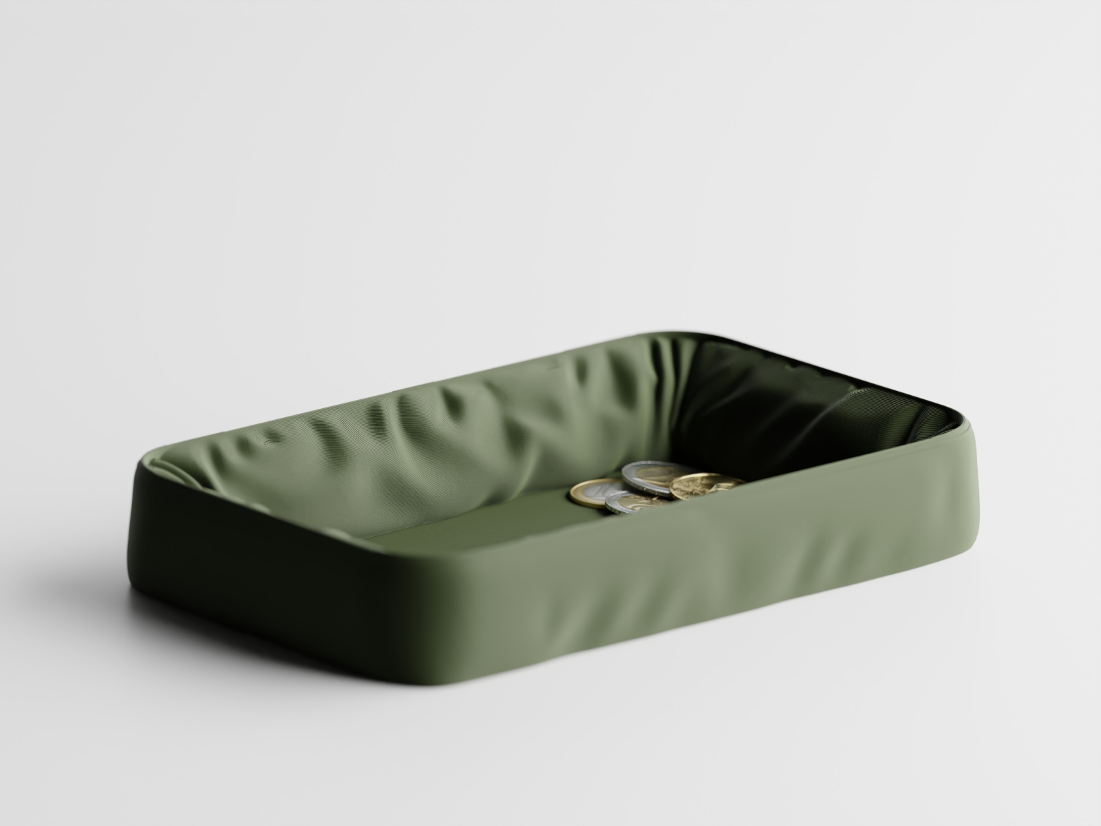 Dar nu se întâmplă. În schimb, această tavă imprimată 3D surprinde acea iluzie de flexibilitate - pliuri fine, tensiune subtilă și curbe netede care imită senzația calmă a materialului înghețat în timp.