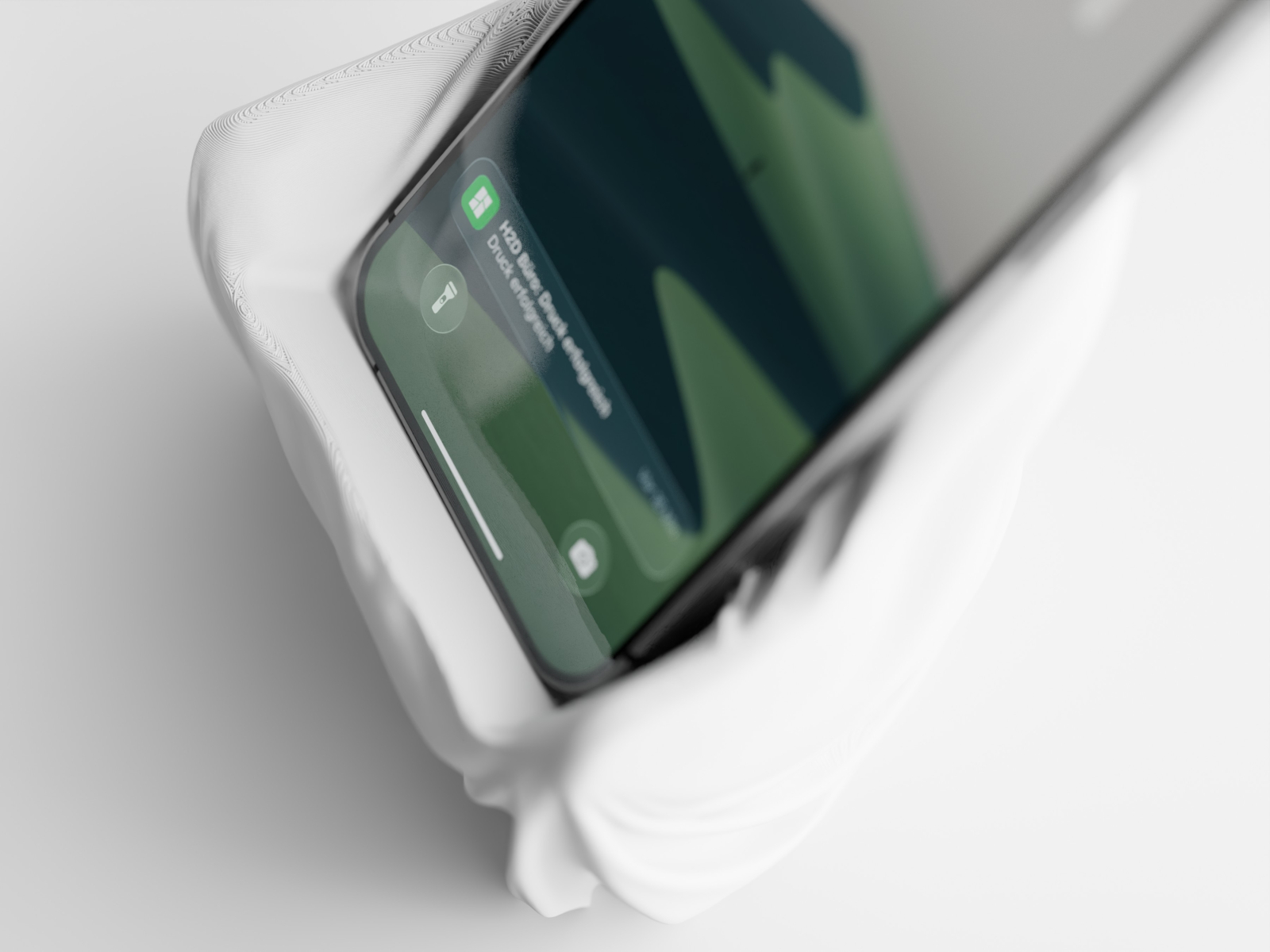 Telefonul dvs. se sprijină în siguranță în pliurile sale, perfect unghiulat pentru vizionare, derulare sau apeluri video - în timp ce aspectul sculptural adaugă o prezență calmă și confortabilă biroului sau noptierei dvs.